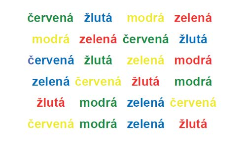 Obrázek 1 Stroopův test A co takový stres? Ve stresu si přeci kuřáci nejčastěji zapálí i při odvykání. Stresová situace vyžaduje zvýšené sebezapření a pozornost vůči ohrožujícím podnětům-sebekontrola je tedy klíčová pro adaptaci. Důkazem mohou být experimenty, v nichž byli účastníci vystaveni nepříjemným smyslovým podnětům, jako je zápach nebo hluk, načež měli podstatně menší trpělivost s nevyřešitelnými úkoly. Pokud však měli účastníci pocit vnější kontroly nad situací (např. měli k dispozici tlačítko, kterým mohli nepříjemný zvuk vypnout), tak, aniž by tlačítko někdo použil, nedošlo ke zhoršení – nejspíš se tedy nevyčerpávali snahou přizpůsobit se(Muraven & Baumeister, 2000). Další výzkumy ukázaly, že podobně vyčerpávající je například potlačování předsudků a stereotypů, agrese, nebo myšlenek na vlastní smrt. Sebekontrolu nebo spíše stejnou sílu ale využíváme, jak se ukázalo později, také při přebírání iniciativy a co je ještě zajímavější –při rozhodování (Vohs et al., 2008). ROZHODOVÁNÍZ marketingových studií víme, že příliš mnoho možností je pro zákazníka frustrující a vyčerpávající. Výzkumy Vohsové a Baumeistera (2008) ukazují, že čím více rozhodnutí učiníme, tím více se snižuje kapacita naší sebekontroly. V jednom experimentu dostali účastníci seznam všelijakých produktů. Kontrolní skupina si je měla pouze prohlédnout a na škále ohodnotit, zatímco ostatní si mezi nimi měli vybrat – jestli preferují modré nebo červené tričko, jaké svíčky, šampony, ponožky se jim více líbí apod. Věřili navíc, že jejich volba bude mít reálný dopad, protože jim bylo řečeno, že na základě svého výběru obdrží na konci výzkumu dárek. Předtím měli ale ještě za úkol vypít ne zrovna chutnou limonádu s příchutí octu.Za vypití každého malého panáka dostali 5 centů (mělo se jednat o „výzkum motivace“). Výsledek? Účastníci, kteří si produkty pouze prohlíželi, v průměru vypili více panáků, než ti, kteří se museli rozhodovat, který produkt se jim více líbí. V jiném experimentu,o hodně bližším reálnému životu, si měli studenti vybrat povinně volitelné předměty (kontrolní skupina jen prostudovat jejich popis). Poté měli trénovat příklady na nadcházející matematický test, který měl, jak jim bylo řečeno, sloužit jako významný prediktor životního úspěchu. Experimentátor odešel a nezávislý pozorovatel za polopropustným zrcadlem zapisoval, kolik času studenti trávili procvičováním a kolik hraním videoher a čtením magazínů, které se „docela náhodou“ válely po místnosti. Již z dřívějších výzkumů se vědělo, že snížená sebekontrola vede k prokrastinaci. Tímto experimentem se ukázalo, že podobný vliv může mít i rozhodování. Studenti, kteří se museli rozhodovat,totiž více prokrastinovali – četli si časopisy a hráli hry. Svým způsobem by se přitom dalo spíše očekávat, že výběrem školních předmětů budou studenti spíše povzbuzeni ke studiu. Vyčerpává nás všechno rozhodování, i to příjemné nebo krátké? Výzkumníci zjistili, že pokud lidé považují rozhodování za zábavné a pokud trvá jen několik minut, efekt vyčerpání se neprojeví (úkoly však nesmí trvat déle než 10 minut). Nejvíce vyčerpávající při rozhodování přitom není přemýšlení a vyhodnocování možností, ani chování odpovídající danému rozhodnutí, ale uskutečnění výběru (Vohs et al., 2008). Co z toho všeho vyplývá? Rozhodování je nejspíš poháněno toutéž silou jako sebekontrola. Asi také proto se ji autoři teorie rozhodli dále nazývat poněkud velkolepě „Silou vůle“ (Willpower). VYČERPÁNÍNakolik je ale vyčerpání síly vůle podobné obyčejné únavě? Přesto, že za silou vůle nachází Baumeister především působení glukózy (pro tělo i mozek hlavní zdroj energie), tvrdí, že vyčerpání síly vůle a únava nejsou jedno a totéž. Při vyčerpání volní síly se totiž nemusíme cítit unaveni, ani nemusíme mít zhoršenou náladu. Dochází však k tomu, že pocity – ať příjemné či nepříjemné – vnímáme intenzivněji:ledová voda je mnohem studenější, cigareta v našich (potažmo kuřákových) představách je mnohem chutnější. Při vyčerpání volní síly se snažíme rozhodování oddálit nebo impulzivně volíme nejjednodušší možnost. Když není možné ani to, pohybujeme se v extrémech, podstatně obtížněji totiž přistupujeme na kompromisy. Zhoršuje se také naše výkonnost v logických úlohách. Ale to je možná tím, že se jednoduše nechceme namáhat, stejně jako dá student po hodinách učení přednost libovolnému filmu s vybuchujícími auty před jakýmkoliv jiným.