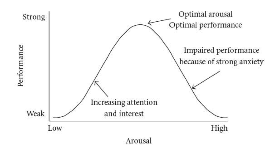 Na Obr. 1 je vidět, že určitá úroveň stresu a vzrušení nás může motivovat k vyšší výkonnosti. Pokud je intenzita stresorů v únosné míře, jsme výkonnější. Naopak ale, pokud už toho je na náš organismus moc, výkonnost prudce klesá. To odpovídá teorii H. Selyeho, který stres, který se nachází v první, levé polovině křivky, nazval eustres a druhou část distres.