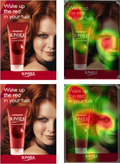 Obrázok 4. Logo môže obsahovať názov spoločnosti, alebo mať len grafickú podobu Meranie účinnosti reklamy:Eye-trackingPri eye-trackingu sa jedná o stopovanie dráhy zraku. Prístroj zisťuje, kam človek najviac zameriava pohľad a ako pohybuje očami pri sledovaní propagačného materiálu. V testovanom materiáli sa hľadajú tzv. ROI (regions of interest – oblasti záujmu), teda miesta, na ktoré najčastejšie upierame zrak. Tie majú potom najdôležitejší význam pre predanie hlavného zdelenia. Najčastejšie to býva hlavný obrázok, titulok, logo, názov produktu (Vysekalová, 2012).